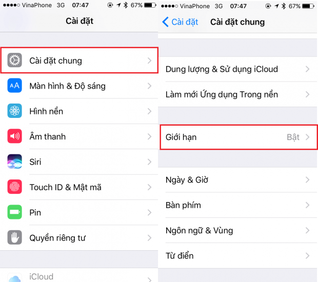 Cũng như trường hợp Mất ứng dụng Camera, người dùng có thể đã bật giới hạn và tắt đi tính năng xóa ứng dụng. Để mở lại tính năng xóa ứng dụng này, người dùng hãy vào Giới hạn và bật lại tính năng này.