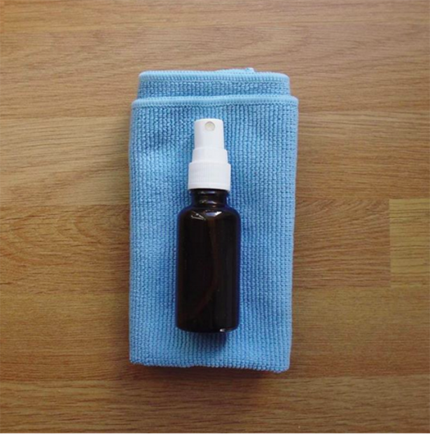 Ngoài nước đóng chai và cồn, bạn cần khăn lau kính và bình xịt nước