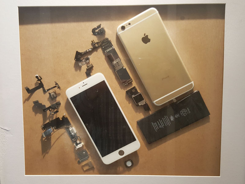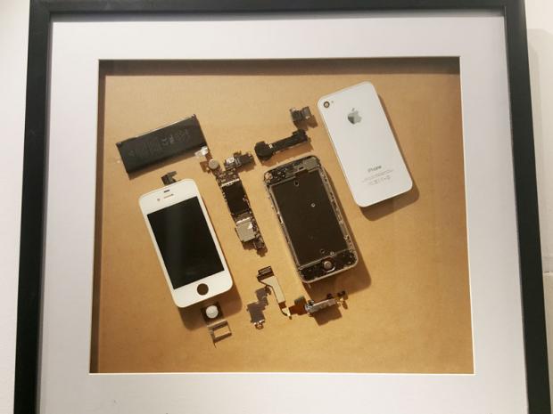 “Linh kiện iPhone các phiên bản từ đời đầu tiên cho tới iPhone 6s Plus được tháo rời tháo rời từng phần vỏ, linh kiện màn hình, dây cáp, loa, bo mạch… sau khi mổ máy để người xem thấy sự khác biệt về cấu hình, màu sắc, kích thước…, có thể cảm nhận được sự 'tiến hóa' của dòng iPhone trong những năm qua”, anh Cương nói.