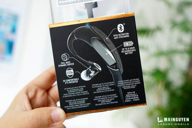 Phía mặt sau của hộp ghi khá nhiều thông tin về chiếc tai nghe này, trong đó có 3 điểm khiến mình thực sự muốn đeo nó vào ngay lập tức là dynamic driver dành cho các âm bass, tính năng aptX và bộ giải mã AAC.