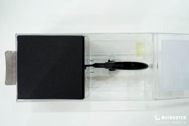 Và sau khi rút toàn bộ mọi thứ chúng ta có ra khỏi chiếc hộp nhựa. Bạn sẽ thấy trong ảnh, nhà sản xuất tới từ Mỹ sử dụng một giá đỡ cũng bằng nhựa trong suốt để cố định tai nghe trong suốt quá trình đặt trong hộp.