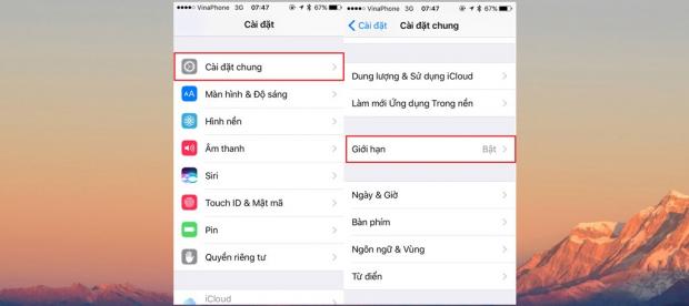 Nếu rơi vào tình huống này, bạn có thể khôi phục lại camera trên iPhone bằng cách vào Cài đặt > Cài đặt chung. Sau đó chọn Giới hạn và nhập mật khẩu của bạn vào.