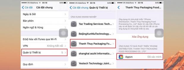 Vào Cài đặt > Cài đặt chung > Quản lý thiết bị và bật cấp phép cho ứng dụng.