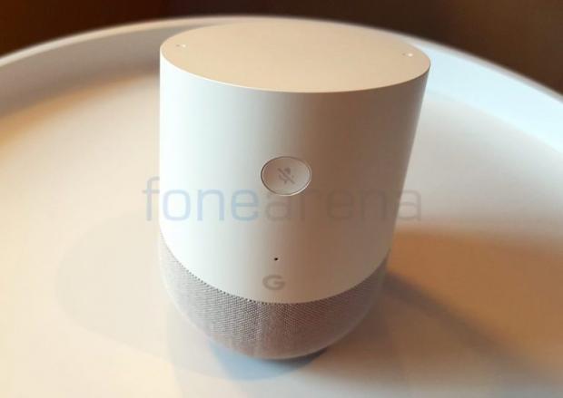 Đập vào mắt đầu tiên là logo 'G' nằm ngay phía trước thiết bị, phía trên là một microphone cùng với một nút bấm vật lý dùng để 'mute' thiết bị. Phía trên thiết bị có thể cảm ứng dùng để điều chỉnh âm lượng.