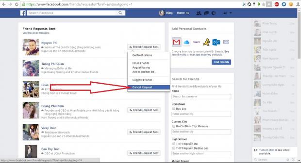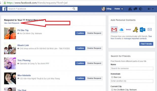 Tiếp theo, chọn View Sent Requests (Xem lời gửi yêu cầu).