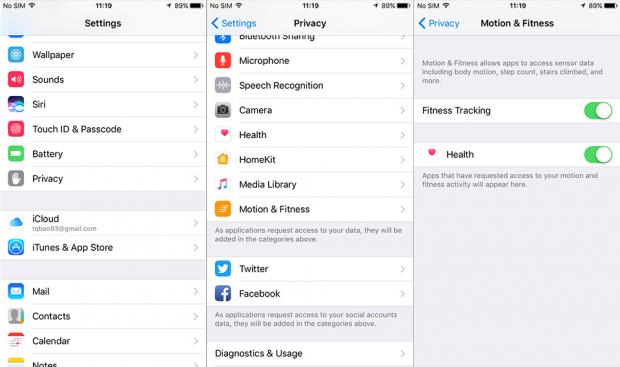 - Tắt tính năng Fitness Tracking bằng cách vào Settings (Cài đặt) > Privacy (Riêng tư) > Motion & Fitness (Chuyển động và sức khỏe). Nếu bạn đang sử dụng một chiếc vòng đeo thông minh hay smartwatch thì tính năng này không còn cần thiết nữa, quá trình tracking sẽ gây hao tốn rất nhiều dung lượng pin.