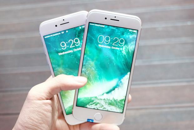 iPhone 7 nhái (trái) và iPhone 7 xịn (phải)