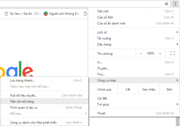 Hãy kiểm tra phần tiện ích mở rộng của trình duyệt, nếu phát hiện có chương trình lạ không phải bạn cài đặt thì hãy tiến hành xóa nó ngay lập tức.