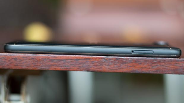 Cạnh trái của sản phẩm là khay cắm sim đi cùng khe cắm thẻ nhớ mở rộng lên đến 256 GB.