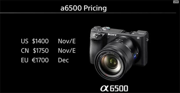 Thiết kế của α6500 có một chút thay đổi so với các thế hệ trước, máy mới dày hơn α6300 khoảng 5mm. Hệ thống điều khiển có thêm một nút gán chức năng và thay đổi vị trí nút C1, nâng tổng số lên 10 nút có thể gán chức năng. Vật liệu của máy được giữ nguyên, màu sắc không thay đổi. Giá bán riêng thân máy được nâng lên mức 1.400USD - đắt hơn 400USD so với α6300.