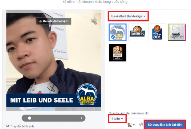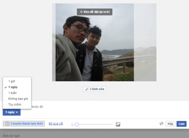 Sau khi lựa chọn xong chủ đề cần trang trí, bạn chỉ cần thiết lập đúng thời gian tồn tại của bức ảnh và chọn sử dụng làm ảnh đại diện.