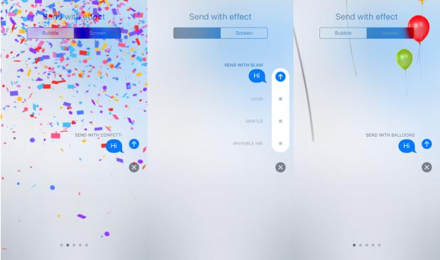 Hồi tháng 5, khi ra mắt iOS 10, Phil Schiller đã dành rất nhiều thời gian trên sân khấu để giải thích ứng dụng Messages sẽ mang đến cho bạn một phương thức và trải nghiệm mới hoàn toàn để giao tiếp với bạn bè. Và khi nói như vậy, ông đang đề cập đến tính năng Slam Messages. Bạn có thể gửi tin nhắn với kích cỡ lớn nhỏ khác nhau, tung hoa hoa giấy hoặc bong bóng khắp màn hình.