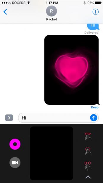 Trong trường hợp bạn vẫn muốn có thêm nhìn cách để gửi tin nhắn, Apple sẽ cho phép sử dụng tính năng cảm ứng kỹ thuật số từ Apple Watch. Từ đó bạn có thể tùy chọn vẽ biểu tượng của riêng bạn, hoặc bạn có thể nhấn và giữ để gửi các hình khác nhau như một trái tim hay một nụ hôn.