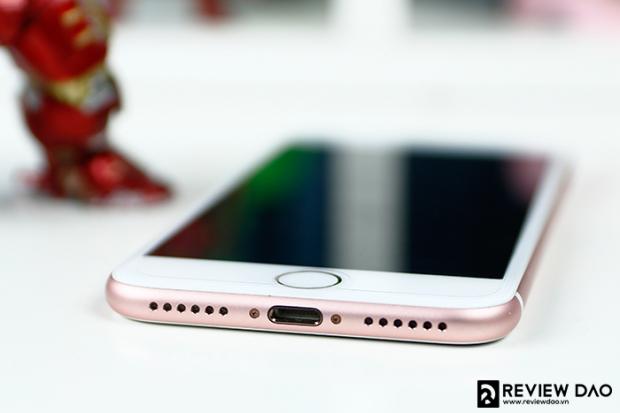 Ở cạnh dưới, chiếc iPhone 7 có jack Lightning và 2 dải loa, trong đó chỉ có 1 loa ngoài bên phải còn bên trái là micro thoại. Apple cũng đã tiết lộ rằng đó là 1 lỗ thông khí áp, được sử dụng để cho phép thông khí với bên ngoài, dùng cho cảm biến khí áp kế trong phần thân máy của iPhone 7.