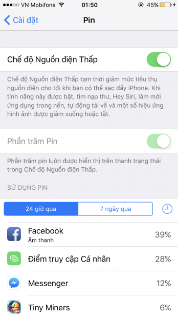 Và trong trường hợp bạn đang cần sử dụng chiếc điện thoại của mình khi nó gần hết pin, thì chế độ Low-Power có thể kích hoạt bằng tay, sẽ giúp cho chiếc iPhone 7 của bạn sụt pin chậm hơn, hoặc sẽ có thông báo yêu cầu bật tính năng này khi thiết bị xuống còn dưới 20% pin.