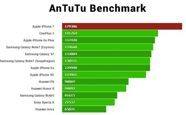 iPhone 7 đứng top đầu bảng xếp hạng AnTuTu thời điểm hiện tại.