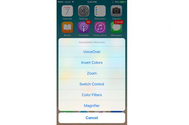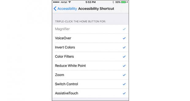 - Để kích hoạt các tùy chọn này rất đơn giản là bạn chỉ cần 3 lần nhấp vào phím Home (Touch ID) liên tục sau đó lựa chọn theo nhu cầu sử dụng. Nếu bạn muốn vô hiệu hóa nó, chỉ cần nhấp lại 3 lần vào phím Home.