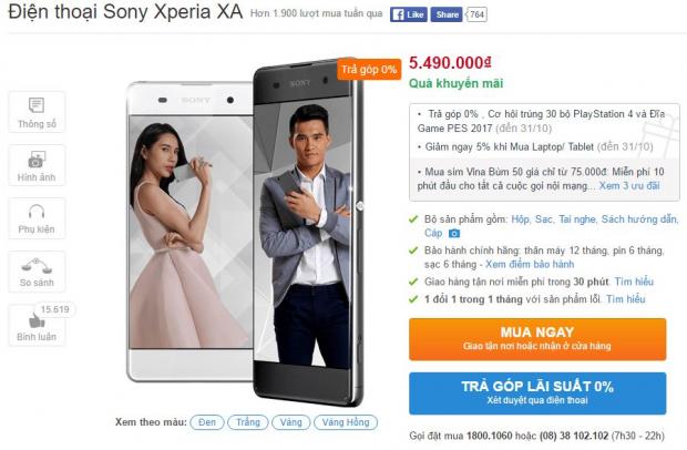Với mức giảm giá này, Xperia XA chắc chắn sẽ có mức giá cạnh tranh hơn hẳn các đối thủ như OPPO F1s (5.99 triệu đồng) và Galaxy J7 Prime (6.29 triệu đồng). Trước đó, theo thống kê từ hệ thống bán lẻ TGDĐ thì Xperia XA luôn có doanh số tốt với hàng ngàn chiếc bán ra mỗi tuần.