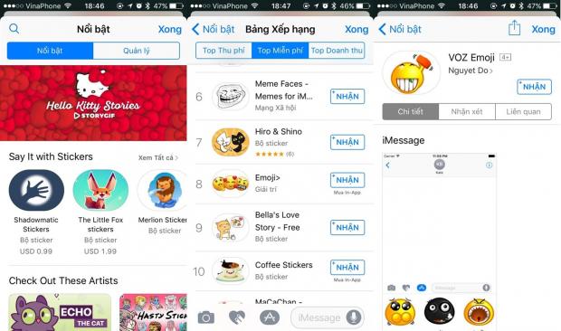 Tại đây bạn sẽ có vô số các tiện ích bên thứ 3 có thể đưa vào iMessage, nó có thể là trò chơi, có thể là các emoticon hay chỉ là các giai điệu. Các tiện ích này có thể tính phí hoặc không, vì thế người dùng nên cân nhắc khi tải về.
