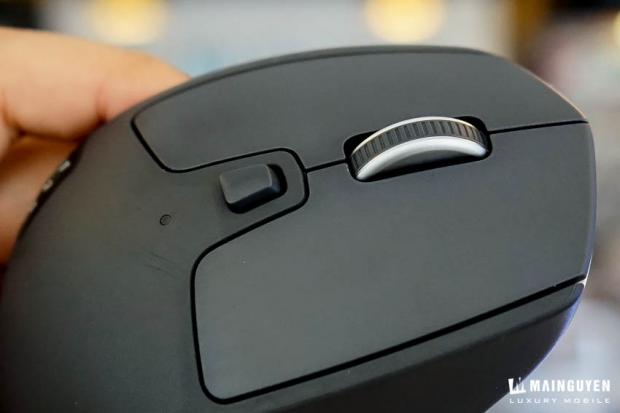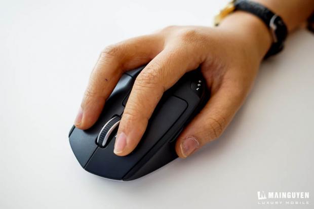 Ở 2 nút nhấn click chuột chính, Logitech đã phủ lên một lớp sơn có nhiệm vụ chống bám vân tay và nó hoạt động tốt, mình rất thích vì dù tay hay ra mồ hôi nhưng không có một dấu vân tay nòa của mình dính lên cả. Switch lực của 2 phím nhấn này cũng được Logitech bố trí hơi lùi ra phía sau và có độ nảy vừa phải, giúp chúng ta không tốn quá nhiều lực cho mỗi lần nhấn.
