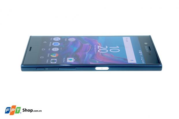 Vì đi theo phong cách góc cạnh, vuôn vức, do đó bề mặt cạnh trên và dưới của Xperia XZ được làm phẳng, bạn hoàn toàn có thể dựng đứng sản phẩm này trên bàn. Cạnh dưới của Xperia là cổng USB-C đặt chính giữa, phía bên trái là micro thoại. Vì loa ngoài được đặt ra trước đã khiến cho phần cạnh đáy gọn gàng hơn. Cạnh trên cũng có 1 micro thu âm đi cùng với jack cắm tai nghe 3.5mm.