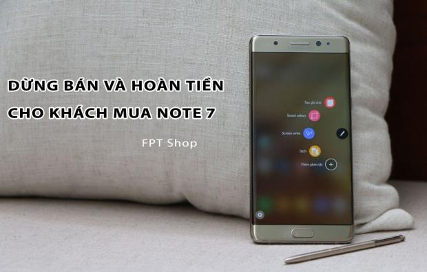 Tp.HCM, ngày 11 tháng 10 năm 2016, Công ty CP Bán lẻ Kỹ thuật số FPT (với tên thương hiệu là ) thông báo hoàn tiền 100% dành cho khách đã mua Galaxy Note 7 tại .