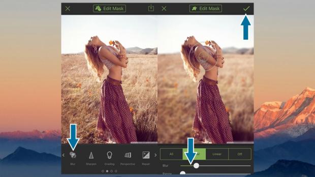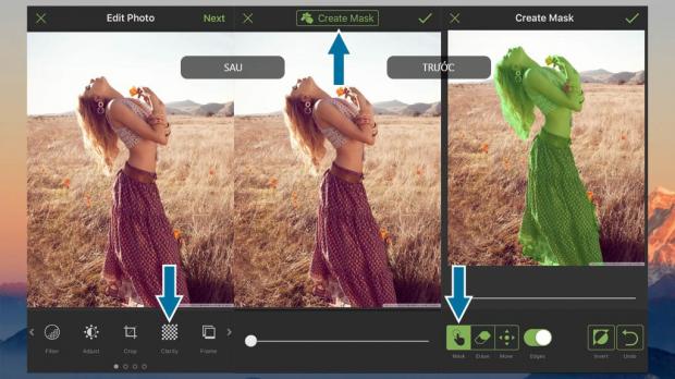Bước 1: Đầu tiên, bạn mở ứng dụng > chọn ảnh > nhấn vào công cụ “Edit Mask” và bôi màu lên vùng mà bạn không muốn làm mờ đi > nhấn dấu “Tick”để xác nhận.