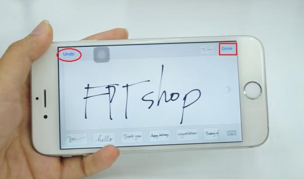 Bước 3: Dùng ngón tay để viết lên màn hình chữ viết mà bạn muốn tạo. Sau đó, nhấn vào nút Done (Xong) ở góc trên bên phải màn hình để hoàn tất. Nếu muốn sửa hoặc xóa đi để viết một chữ khác, bạn nhấn vào Undo (Hoàn tác) để tạo lại. Xong khi tạo xong lại tiếp tục nhấn Done.