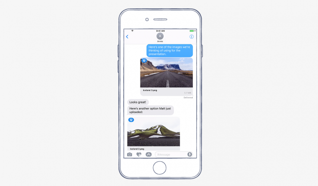Bây giờ bạn có thể cộng tác với các đồng nghiệp khác ngay trong ứng dụng nhắn tin iMessage. Dropbox iOs nay đã tích hợp với iMessage mới, cho phép bạn chọn các file Dropbox ngay thanh nhắn tin của iMessage và chia sẻ chúng với các cuộc trò chuyện. Trước đây, bạn phải chuyển đổi qua lại giữa các ứng dụng. Nay thì không cần phải làm vậy nữa nhé.