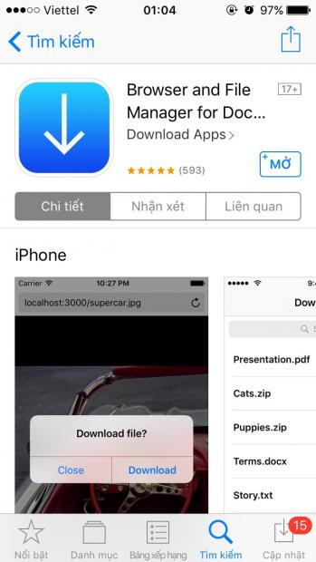 Để tải video từ Youtube các bạn tải ứng dụng Browser and File Manager for Documents trong Appstore.