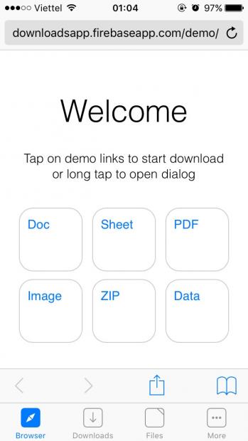 Tại giao diện chính của ứng dụng, chúng ta sẽ có 4 thẻ để lựa chọn là Browser, Downloads, Files và More.