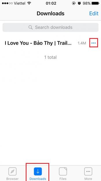 Sau khi quá trình tải về hoàn tất hãy truy cập lại ứng dụng Browser and File Manager for Documents và truy cập thẻ Download, tại đây bạn sẽ thấy video vừa tải về.
