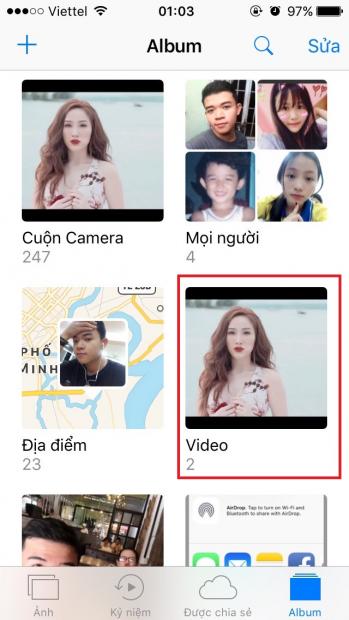Lúc này mở Ảnh > Album, bạn sẽ thấy video vừa tải về.