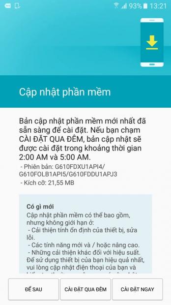 Samsung cũng lưu ý là “Để sử dụng thiết bị của bạn hiệu quả nhất, vui lòng cập nhật và kiểm tra thường xuyên xem có bản cập nhật hay không…”. Nếu bạn là người đang sử dụng Galaxy J7 Prime thì hãy kiểm tra và cập nhật ngay nhé.