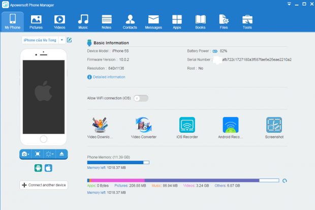 Với tùy chọn My Phone khá tiện lợi khi người dùng đã có thể kiểm tra được toàn bộ thông tin của iOS device, chủ động sao lưu thiết bị của bạn hay đơn giản là quản lý các file trên thiết bị, chụp màn hình, khởi động lại,…