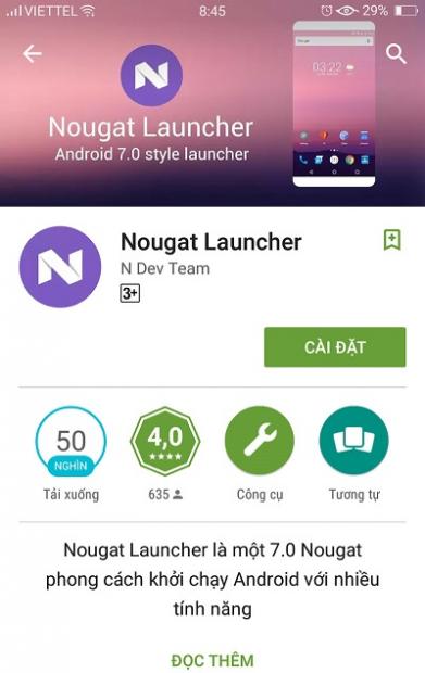 Truy cập vào CH Play tìm ứng dụng có tên Nougat Launcher và tiến hành cài đặt.
