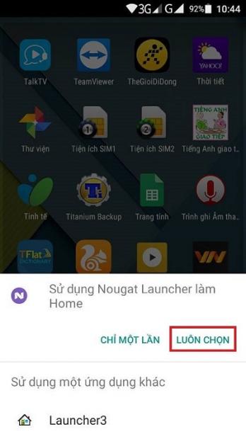 Sau đó, tiến hành mở ứng dụng và chọn Nougat Launcher làm giao diện mặc định.