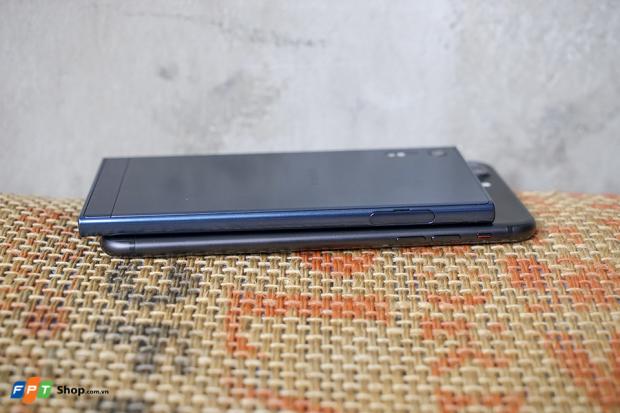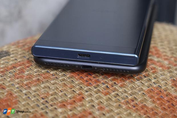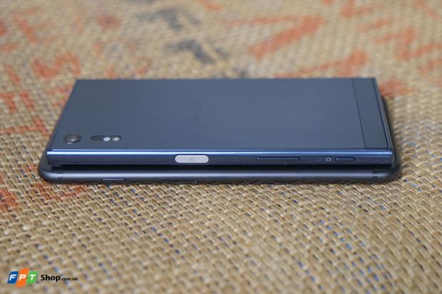 Khác với cách làm của Apple, Sony đưa toàn bộ cụm phím nguồn, âm lượng sang phía bên cạnh phải, vị trí đặt không quá cao vì vậy rất dễ thao tác. Sony vẫn còn giữ lại phím camera nhằm khởi động máy ảnh nhanh, đây là điều mà mình thấy rất tiện lợi. Cảm biến vân tay được tích hợp sẵn lên phím nguồn, nhưng điều này lại khiến việc quét vân tay có phần khó khăn hơn bình thường, do diện tích tiếp xúc không nhiều. Những người dùng mới sẽ cảm thấy đôi chút 'bối rối' với điều này. Phía cạnh trái là nơi đặt khe cắm thẻ nhớ và sim.