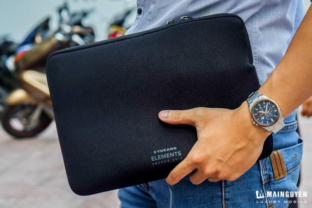 Sẽ không cần phải nói quá nhiều về chất lượng sản phẩm đến từ các mẫu túi của nhà sản xuất Italia này. Mình đã sử dụng qua rất nhiều các túi xách balo lẫn túi chống sốc của Tucano thì chưa có một sản phẩm nào làm mình thất vọng. Điểm mà mình đôi chút tiếc nuối ở Elements Second Skincó chăng mà nó sẽ chí có một sắc đen duy nhất. Giống như những mãu túi xách của hãng, Elements Second Skin có chút gì đó cổ điển của Châu Âu vì sự đơn giảm đến kì lạ của nó, bạn sẽ không tìm thấy bất cứ các chi tiết thừa ở mẫu túi chống sốc này. Các đường may ư? Các hình khối trang trí ư? Các hoa văn ư? Tuyệt nhiên không hề xuất hiện trên Elements Second Skin. Mình chỉ có thể thấy được tên của Tucano, tên sản phẩm và một logo của hãng ở phía mặt sau. Và thú thật mình rất thích cách thiết kế đơn giản đến không có gì này của Tucano. Điều mà mình buồn nhất có chăng chỉ là màu sắc như đã đề cập.