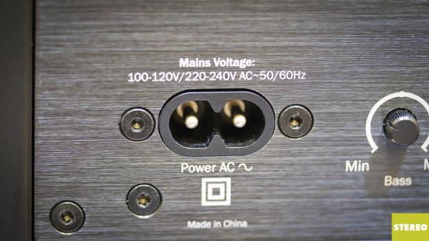 Toàn bộ các cổng kết nối và chốt cắm, cũng như các thông số kĩ thuật của loa đều được “tọa lạc” trên một tấm thép lớn với vân phay xước khá đẹp mắt. Tấm kim loại này cũng sẽ kiêm nhiệm luôn nhiệm vụ tản nhiệt cho chip ampli công suất phía trong, do vậy đừng qua lo lắng khi phần kim loại này nhanh chóng nóng lên sau một thời gian sử dụng loa.