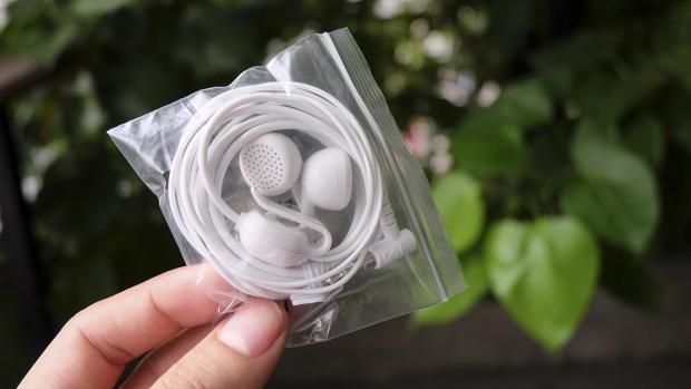 Tai nghe đi kèm là dạng thường và có jack cắm ngang. Nhưng dù sao có còn hơn là bị lược bớt.