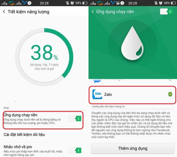 - Cách khắc phục: Bạn thử tắt chức năng tiết kiệm pin của máy, hoặc cho phép ứng dụng Zalo chạy nền để có thể nhận được những thông báo mới nhất từ ứng dụng.