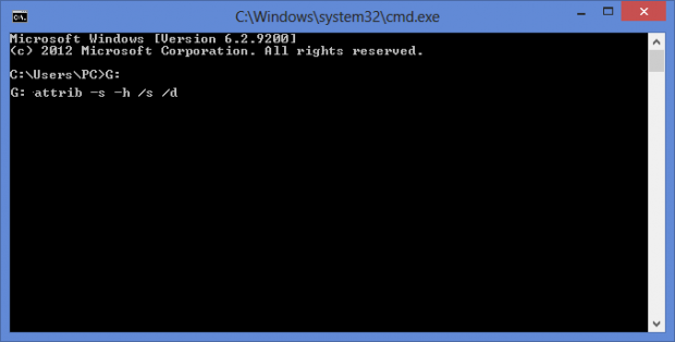 Tiếp theo nhập câu lệnh dưới đây vào cửa sổ Command Prompt: attrib -s -h /s /d