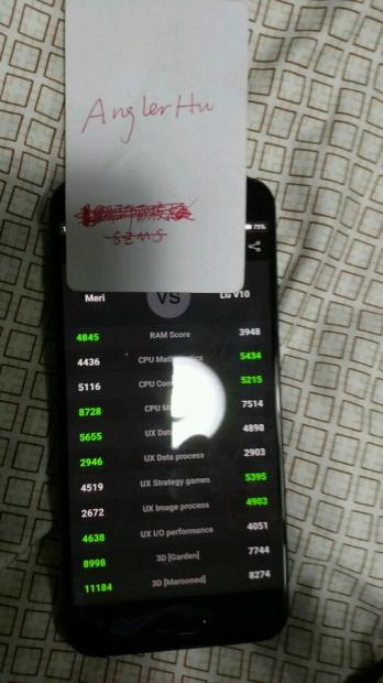 Chúng ta cũng có kết quả so sánh giữa Meri với một sản phẩm khác là LG V10, hai thiết bị có sức mạnh khá tương đương nhau, cũng nhắc một chút là LG V10 được trang bị màn hình QHD, vi xử lý Snapdragon 808, dung lượng RAM 4 GB.