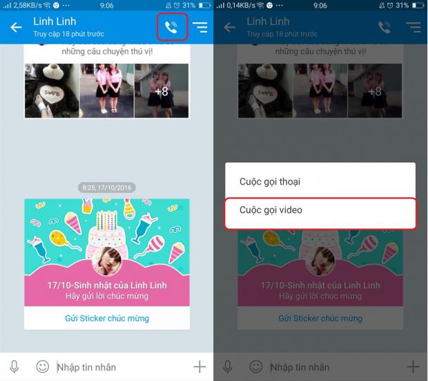 Lưu ý: Các bạn chỉ có thể gọi video cho nhau khi cả hai đều hỗ trợ tính năng này