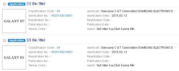 Sự hiện diện của hai sản phẩm này được xác nhận là do Samsung đã tiến hành đăng ký nhãn hiệu tên Galaxy H1 và Galaxy H7 tại Cục Sở hữu trí tuệ Hàn Quốc, không lâu sau khi họ đăng ký tên Galaxy A6, A8 và A9.
