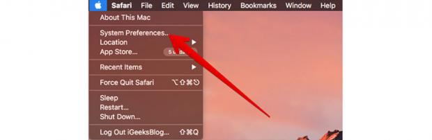 - Các bạn nhấp chuột vào logo Apple ở góc trên bên trái màn hình.