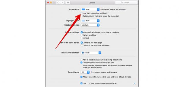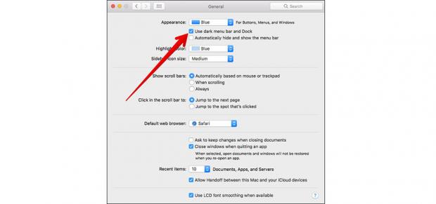 - Để tắt chế độ này thì đơn giản là làm theo các bước trên và bỏ tick ở phần Use Dark Menu Bar and Dock.