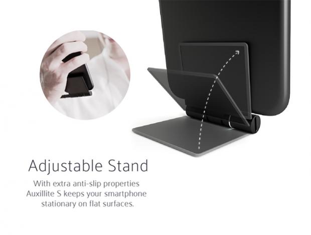 Sản phẩm có ưu điểm nhỏ gọn, hình dạng ống, thiết kế thon dài và nằm song song với cạnh dưới của iPhone. Ngoài đầu cắm Lightning để kết nối với iPhone, mỗi bên của Auxillite chứa một cổng cắm bao gồm cổng 3.5 mm để kết nối với tai nghe và cổng Lightning để sạc/sync. Hiện Auxillite đang chạy dự án góp vốn trên KickStarter với giá bán chỉ khoảng $13, phiên bản Auxillite S có thêm chân chống để dựng đứng máy và chỗ quấn cáp được bán với giá $17 (tháng 1 năm 2017 sẽ bắt đầu giao hàng).