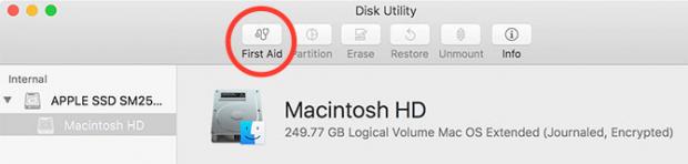Mặc dù máy Mac của bạn hoạt động bình thường, nhưng bạn cũng nên thực hiện bước này trước khi bạn nâng cấp lên hệ điều hành Mac OS Sierra. Bạn có thể truy cập vào công cụ sửa chữa ổ đĩa miễn phí của Mac bằng cách tìm kiếm công cụ Disk Utility trên máy. Sau khi khởi động công cụ này, chọn ổ đĩa khởi động của bạn, ở đây thường là ổ Macintosh HD rồi chọn First Aid. Chương trình sẽ tự động sửa chữa ổ đĩa cho bạn. Tiến trình này diễn ra rất nhanh chóng.
